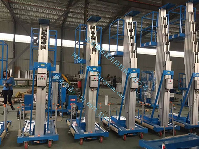 通常有單柱、雙柱、三柱、四柱、六柱等形式,根據需要可以加裝輔助行走裝置,為了放過通過低矮的通道可以定做為可斜式,還可以安裝到汽車、電瓶車等方便高空作業使用。
